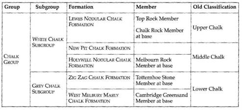 Upper’ Chalk is now redundant, but appears in many maps and textbooks. The new